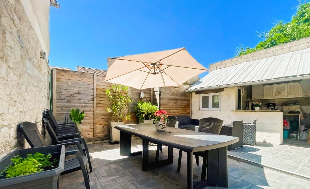 La deuxième maison comprend un séjour, une cuisine indépendante (accès à la cave à vin), deux chambres et une salle d'eau (douche). Petite dépendance donnant sur la belle terrasse à l'abri des regards pour profiter des beaux jours.