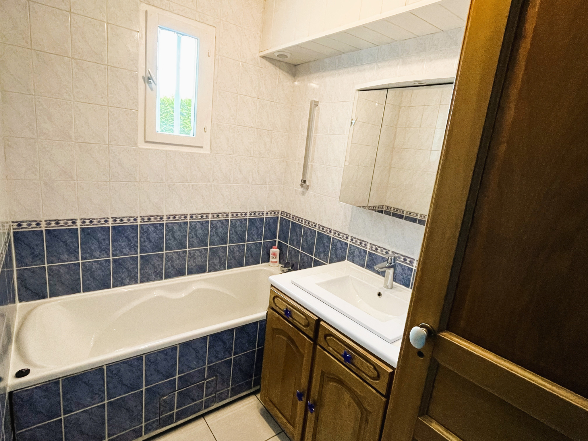 Elle est vivable de plain pied : une chambre et une salle de bains au rdc. La cuisine est équipée ouverte sur le séjour en L.