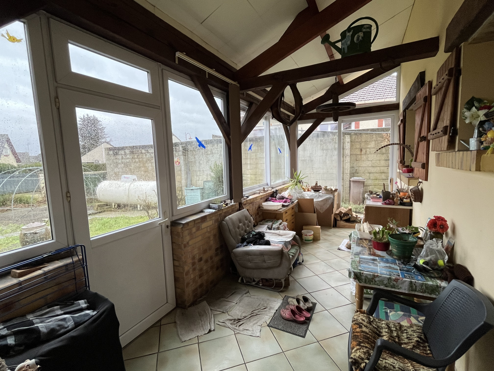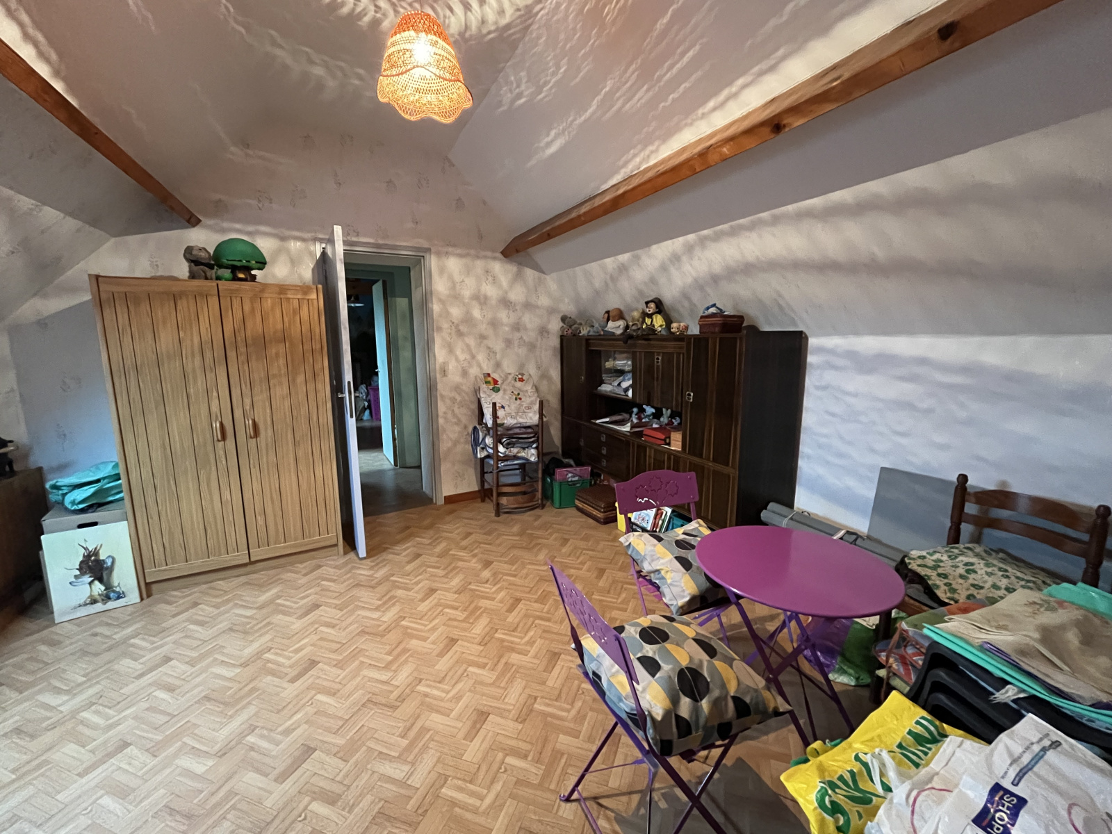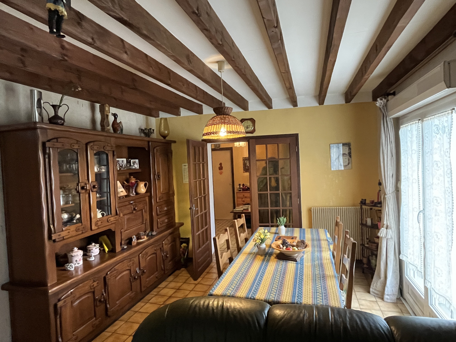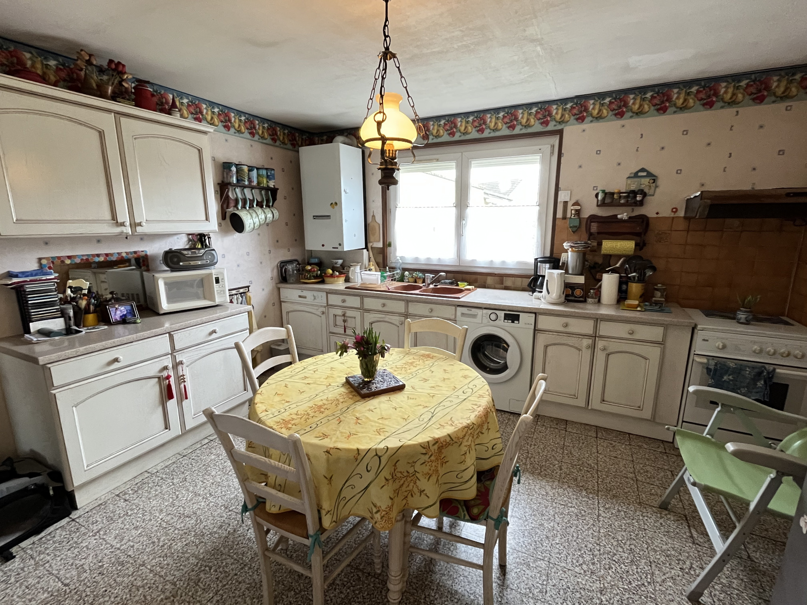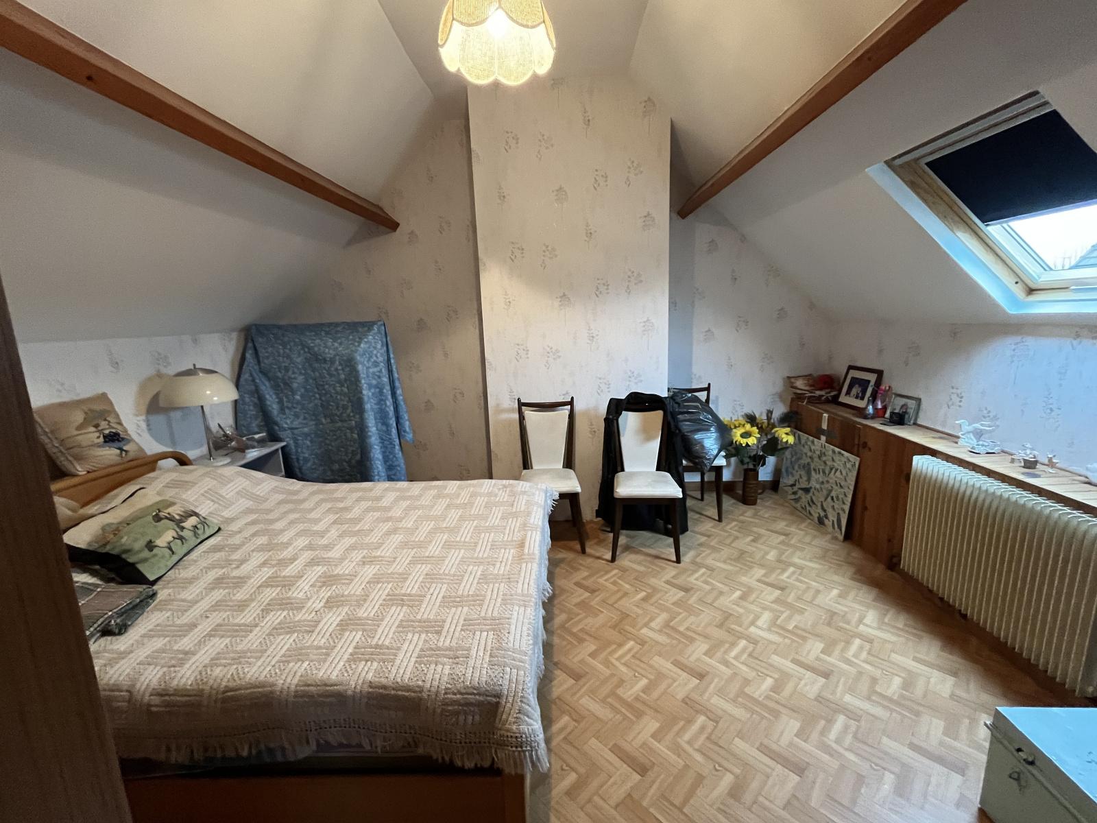Maison ancienne individuelle comprenant au rdc : Véranda, grande cuisine aménagée, Séjour avec Ppêle à bois, une chambre et Salle d'eau. A l'étage : deux chambres et un bureau ou chambre traversante. GARAGE.